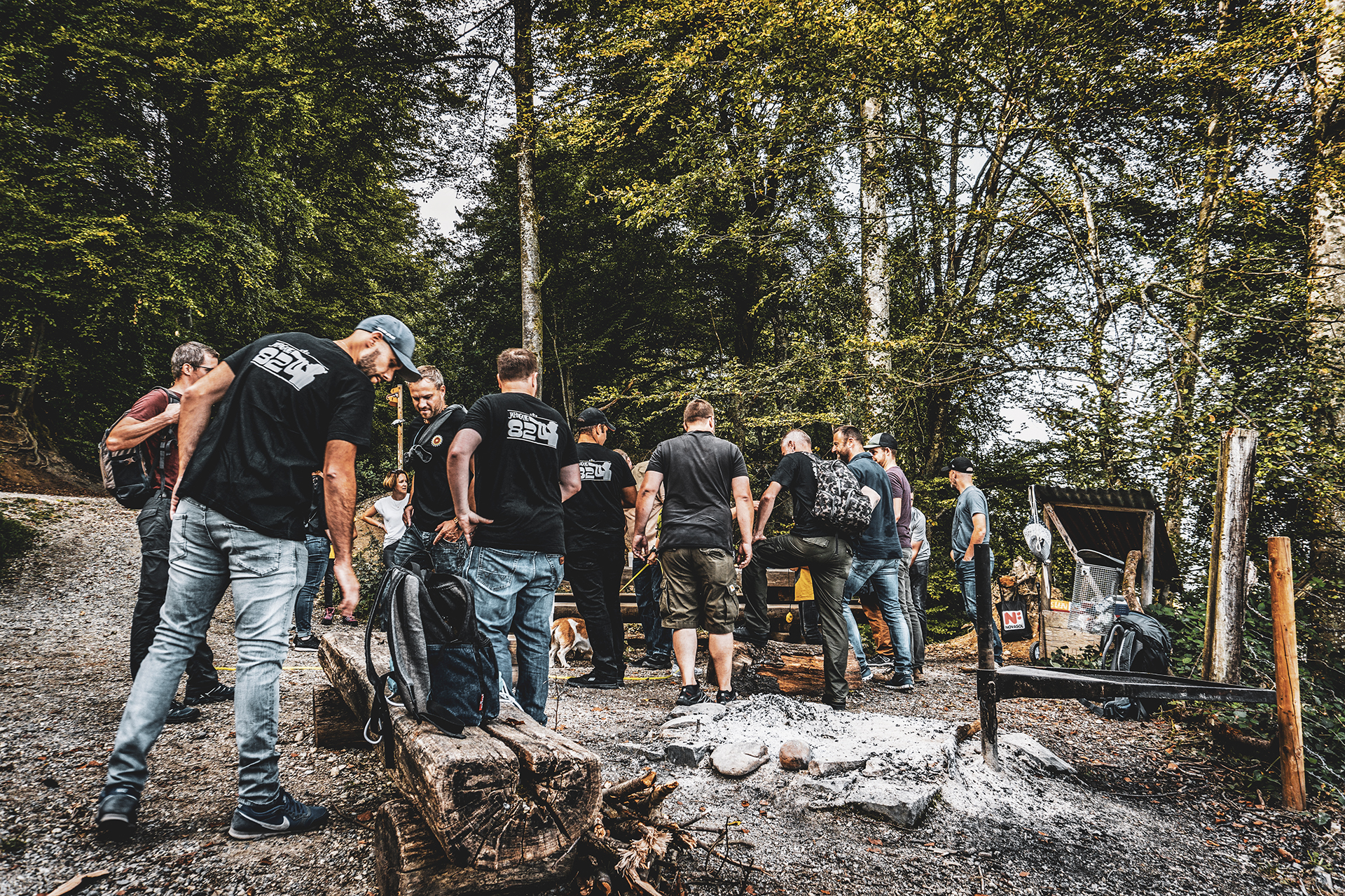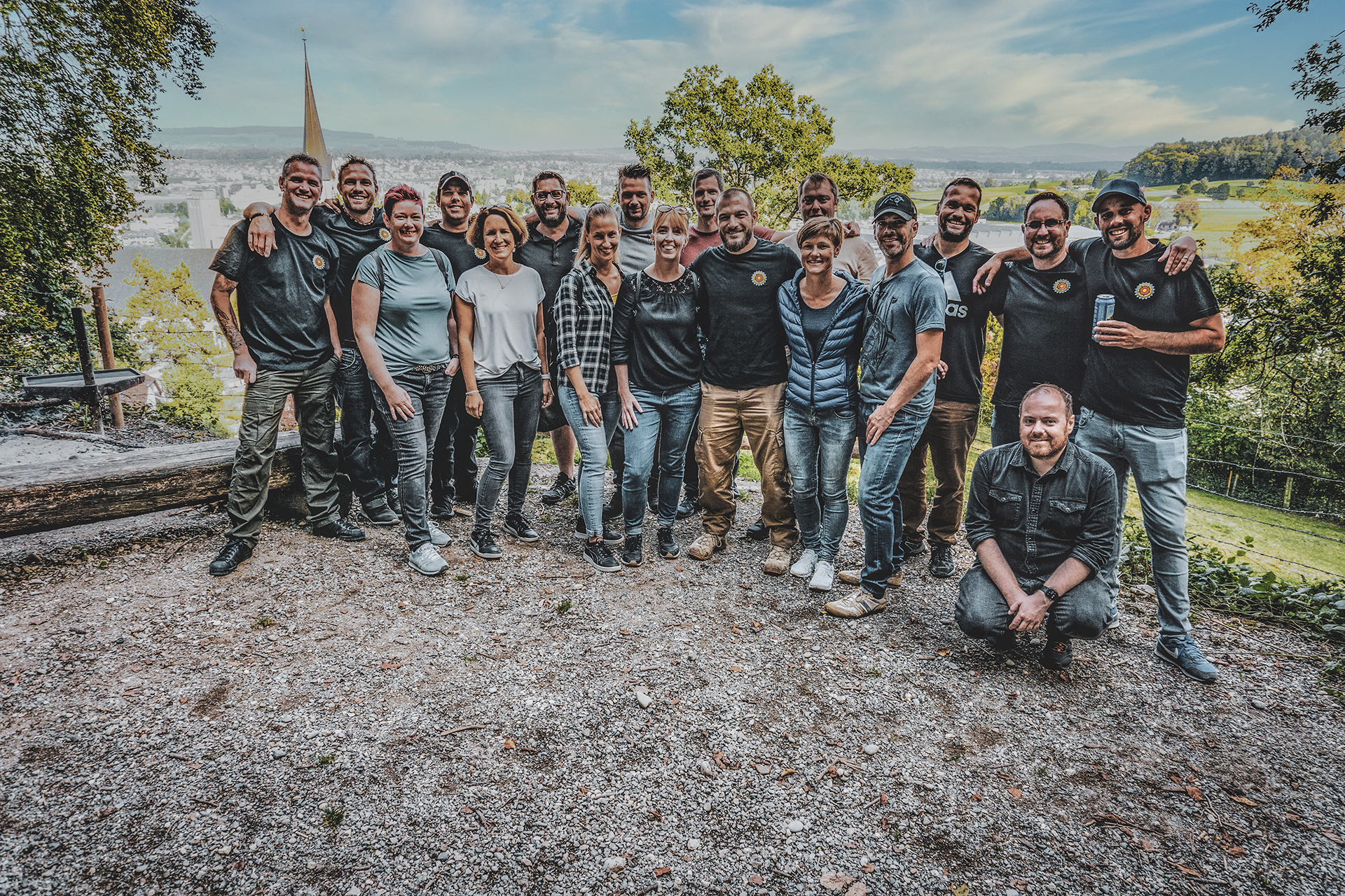 „Bier fassen, Abmarsch um halb“ war das Kommando. Rasch war aufgeräumt, Kind und Kegel verabschiedet, Hunde angeleint. Weiter gings bergauf. Dass wir 39 sind, haben die einen mehr, die anderen weniger gespürt. Entschuldigend sei erwähnt, dass manche noch einen gloriosen Sieg gegen den Tabellenersten vom Vorabend in den Knochen hatten.