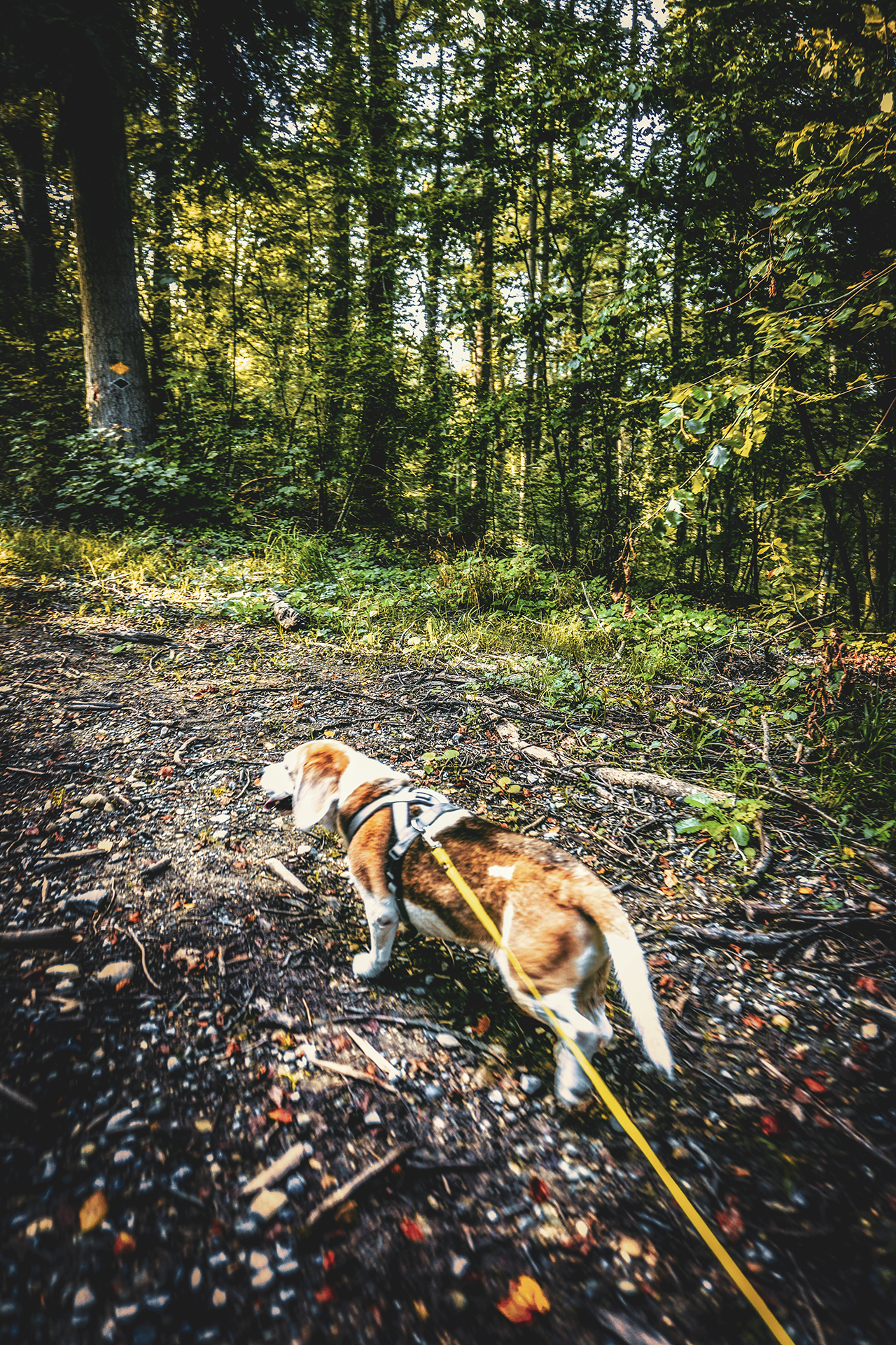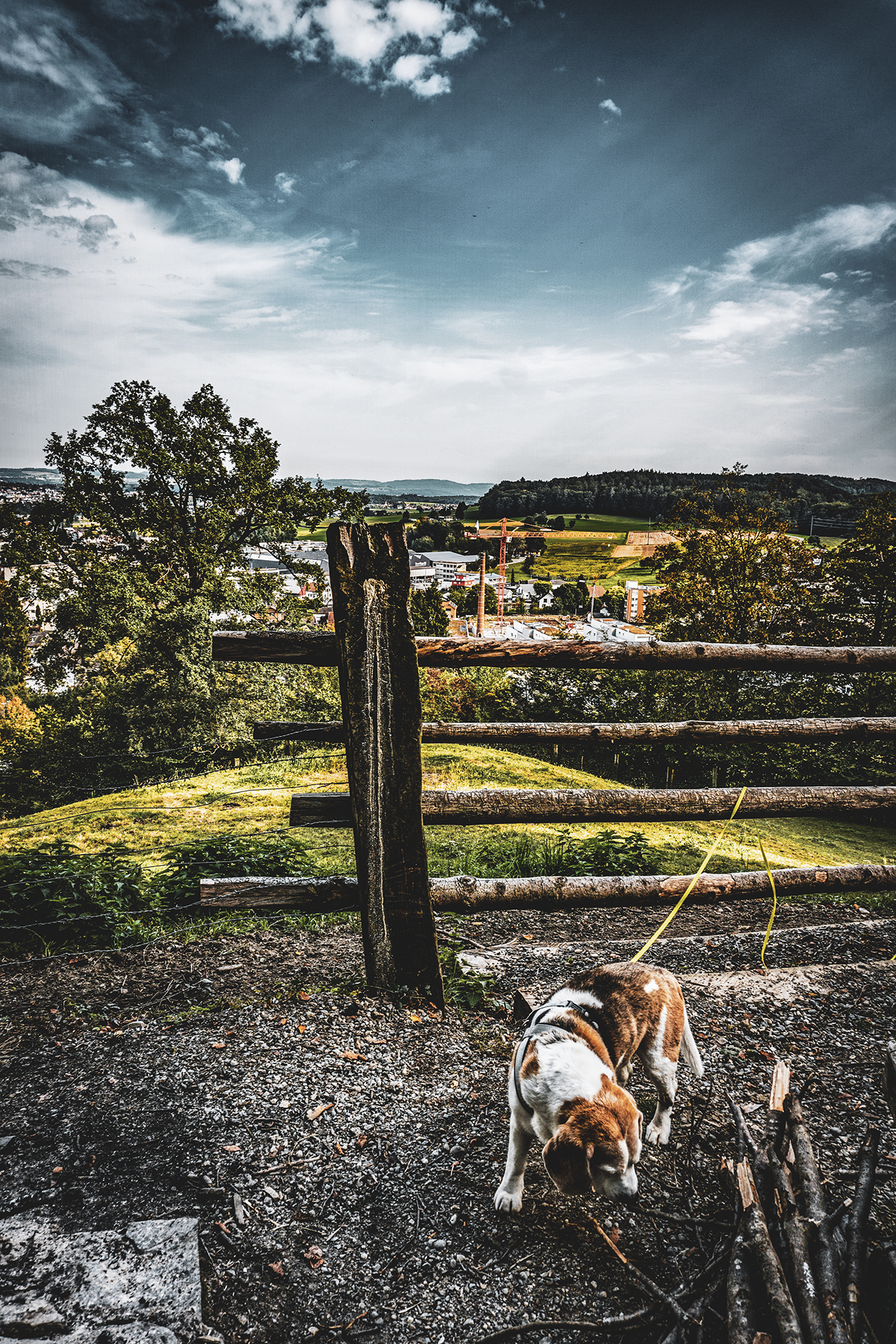Der höchste Punkt des Rietenbergs liegt laut Wikipedia auf 712 m ü. M. Das ist ungefähr auch die Baumgrenze, wie wir auf dem langen, steilen Aufstieg schmerzlich feststellen durften. Nicht immer war klar, welcher Weg zum Ziel führt. Da wir nach Seengen wollten und nicht nach Rom, war es wichtig, korrekt abzubiegen. Unser befellter Begleiter hat uns meist gut geleitet. Einzig bei der Wegspinne galt seine Aufmerksamkeit eher einem Artgenossen.