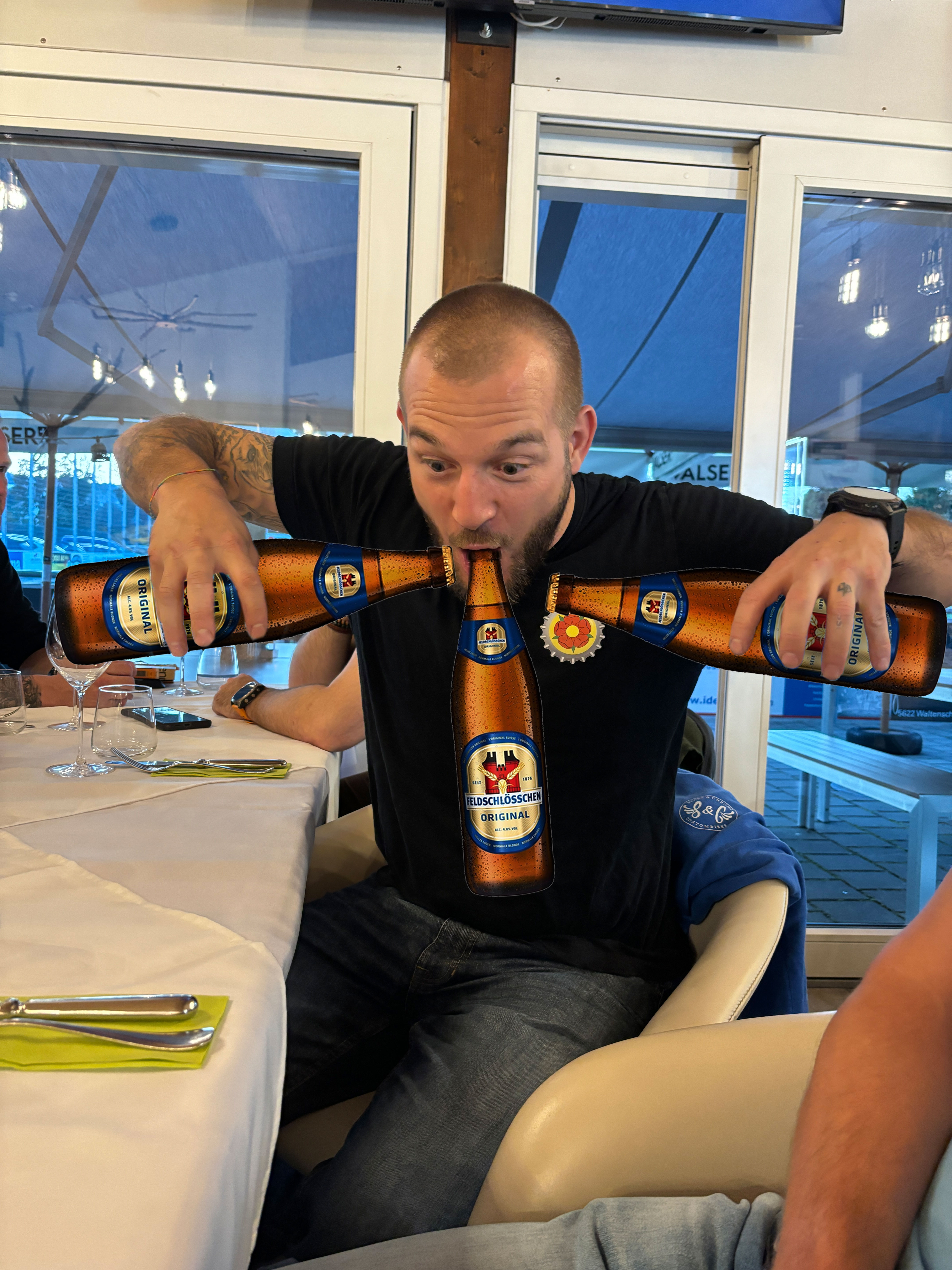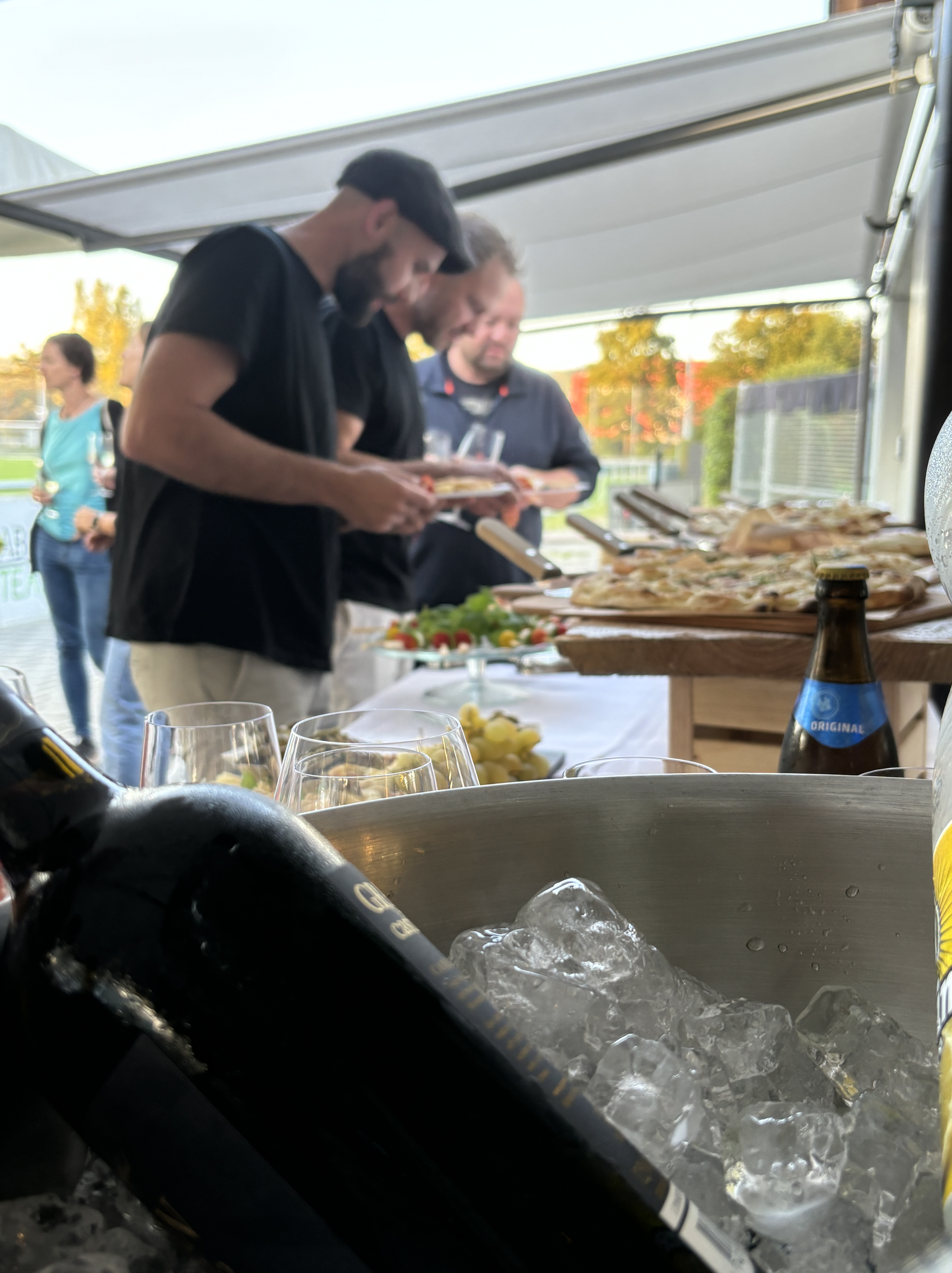 Nach so viel Arbeit, wars Zeit für ein kaltes Getränk. Und die Pinsas waren auch schon im Anmarsch.