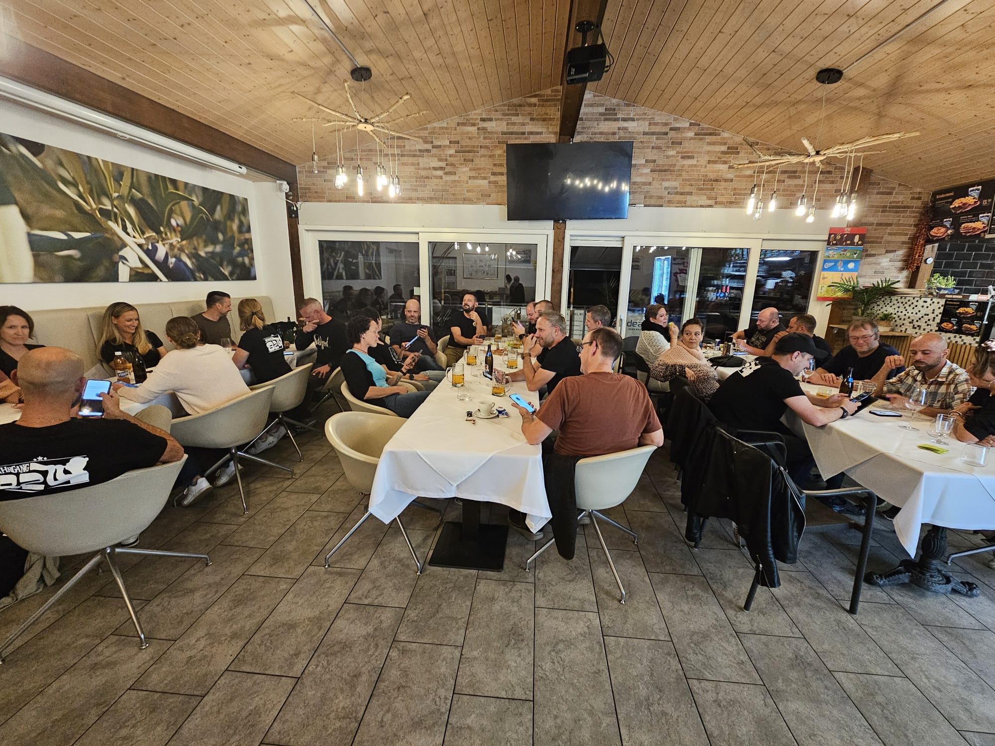 Nach einem ruckligen Start hat der Präsident auch noch ein hartes Quiz veranstaltet, selbstverständlich kein Problem für die gewieften Jahrgänger. Bei weiteren Kaltgetränken, einem offerierten Grappa und dem Dessertbuffet wurde bis spät erzählt, gelacht und geplant.